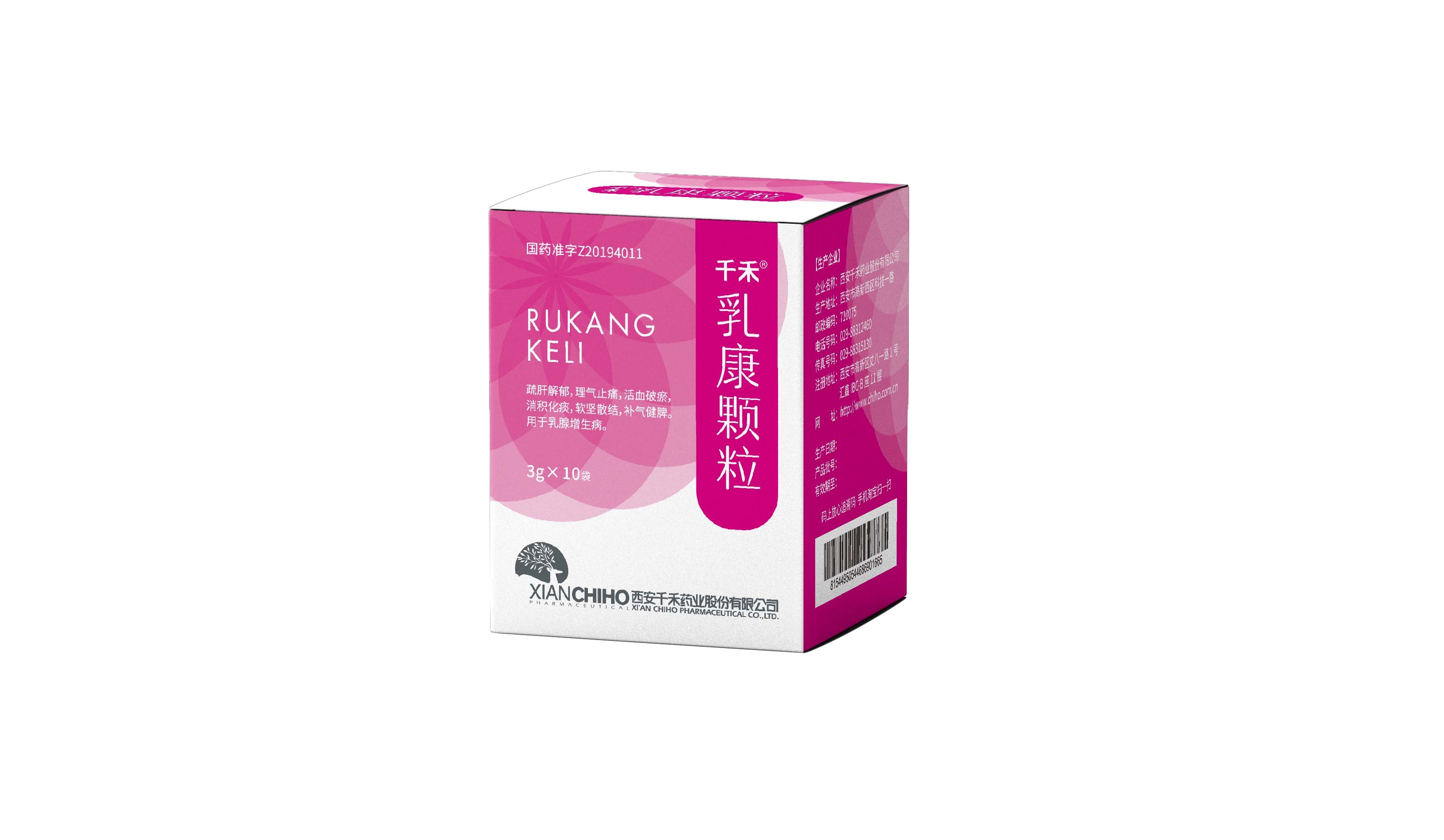 [药品名称] 乳康颗粒 [成 份] 牡蛎、乳香、瓜蒌、海藻、黄芪、没药、天冬、夏枯草、三棱、玄参、白术、浙贝母、莪术、丹参、鸡内金(炒)。 [性 状] 本品为棕褐色混悬颗粒;气微香,味苦,微甜。 [规 格] 每袋装3g(相当于饮片2.52g)。 [包 装] 聚酯/铝/聚乙烯药品包装用复合膜,6袋/盒。 | [功能主治] 疏肝解郁,理气止痛,活血破瘀,消积化痰,软坚散结,补气健脾。用于乳腺增生病。 [用法与用量] 口服。一次1袋,一日2次,饭后服用,20天为一疗程,间隔5--7天继续第二个疗程,亦可连续用药。 [批准文号] 国药准字Z20194011 |