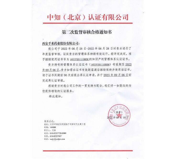2022年7月25日公司顺利通过国家《知识产权管理体系》GB/T29490-2013第二次监督审核!